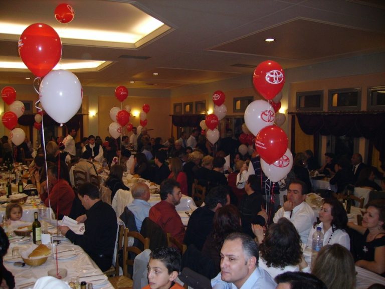 Ευχάριστο θέαμα παρουσίαζε το ντεκόρ της αίθουσας με τα εκατοντάδες αιωρούμενα πάνω από τα τραπέζια λευκά και κόκκινα μπαλόνια με το όνομα από τη μια πλευρά του Συλλόγου ΣΥΛΛΟΓΟΣ ΤΡΟΒΑΤΙΑΝΩΝ  και από την άλλη το όνομα της χορηγού εταιρείας   « ΤΟΥΟΤΑ ΔΡΟΜΕΑΣ » Θήβα – Λιβαδειά . Πολλοί φεύγοντας τα πήραν μαζί τους για ενθύμιο.
